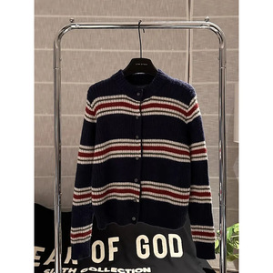渔渔高品质洋气时尚条纹撞色针织衫2025秋冬新款韩版显瘦毛衣开衫