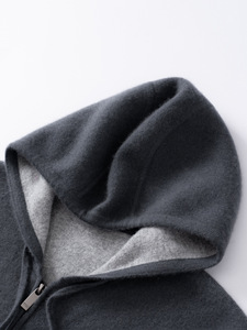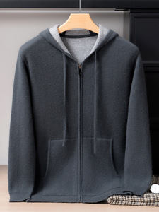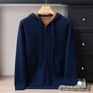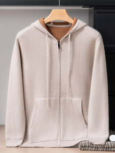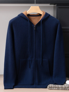 100%山羊绒衫空气层加厚连帽开衫男士时尚休闲保暖针织外套厂家发