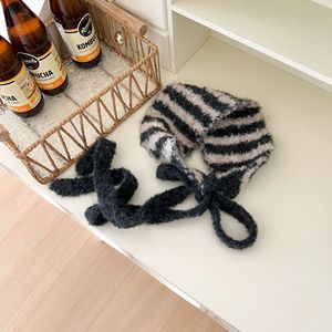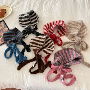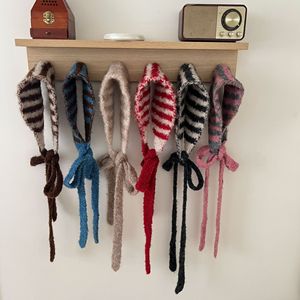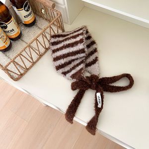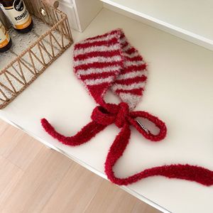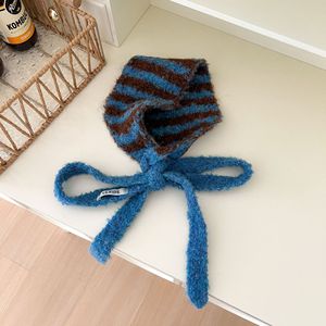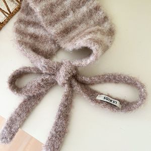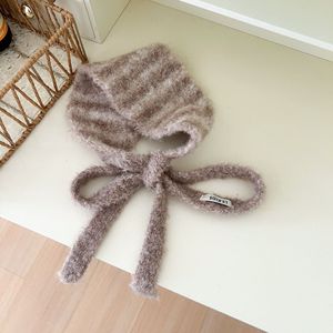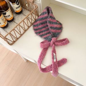 ins个性条纹儿童针织小围巾 冬季女童时髦设计系带包头耳罩批发