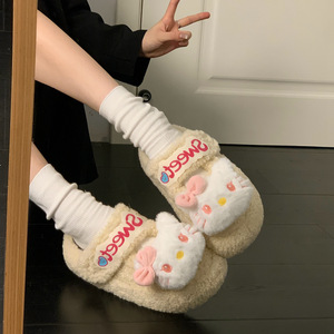 厚底增高防滑包头拖鞋女外穿2025秋冬新款可爱卡通小猫毛毛棉拖鞋