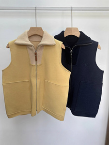 H家2025秋冬新款老钱风减龄气质羊绒立领拉链针织开衫马甲外套女