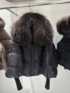 欧洲站2025新款奢华皮草大毛领羽绒服女短款宽松加厚保暖时尚外套