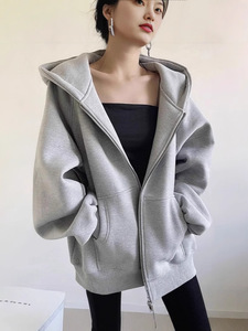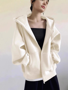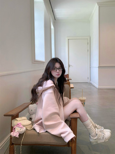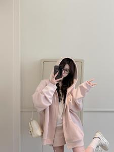 粉色连帽卫衣外套女春2025新款宽松慵懒chic秋季薄款拉链上衣