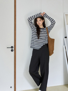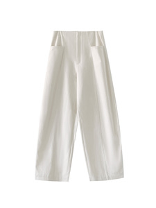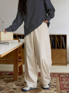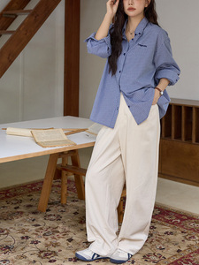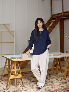 大码女装早秋宽松高腰纯棉阔腿裤女垂感慵懒显瘦双色直筒裤休闲裤