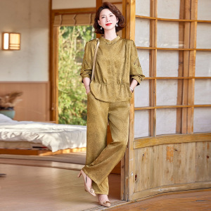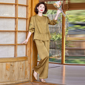 2025新款妈妈秋装套装洋气时尚上衣两件套中老年人女秋季短袖长恤