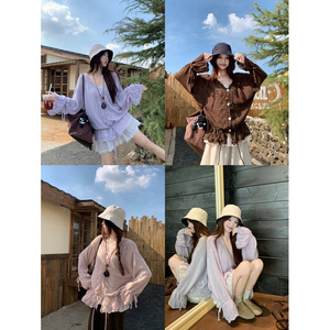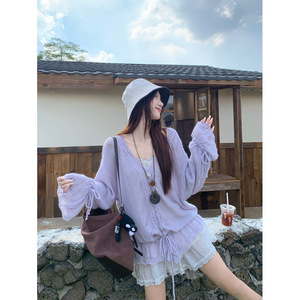熹凤梨~2025秋季新款温柔抽绳钩花毛衣+花边吊带上衣套装女