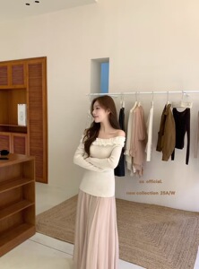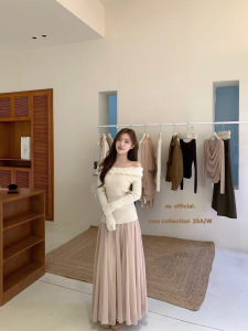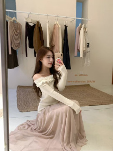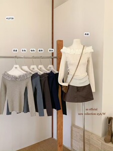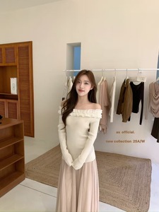 韩系设计感一字肩针织衫秋装女装新款内搭修身套头上衣打底衫毛衣