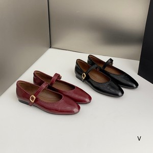 欧洲站女鞋25秋冬时尚一字带柔软油蜡羊皮圆头浅口平底玛丽珍单鞋