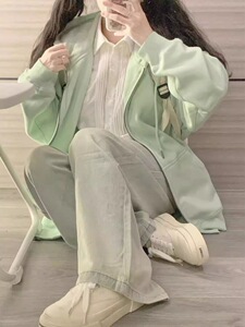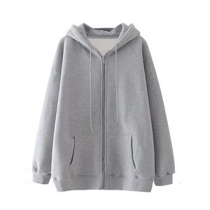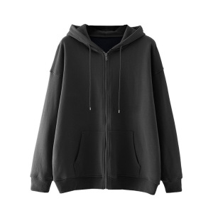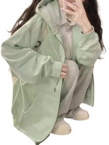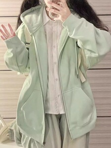 纯色连帽卫衣女春秋oversize薄款外套chic宽松慵懒风拉链开衫上衣