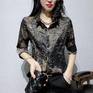 长袖衬衫女2025春季新款修身显瘦韩版印花高级感缎面上衣气质衬衣