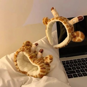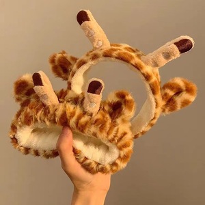搞怪可爱长颈鹿洗脸发带立体动物毛绒卡通头发箍网红鹿角节日演出