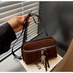 今年流行小包包女秋冬新款小众麂皮绒磨砂盒子包高级感女士斜挎