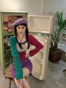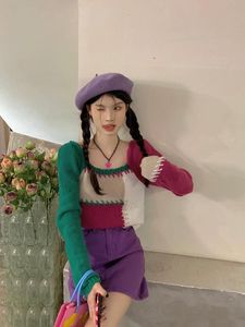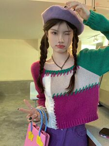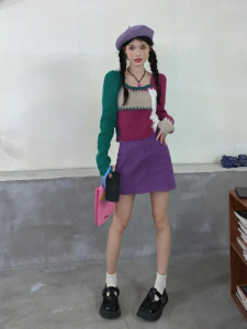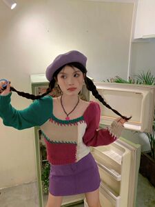 方领短款针织打底衫女秋冬小个子穿搭内搭大佬毛衣亮色miu系上衣