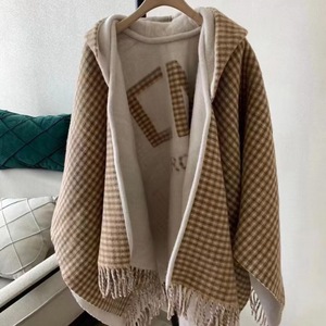 高级感双面羊绒FF字母围巾女冬季保暖大披肩奶驼色FD斗篷百搭披风