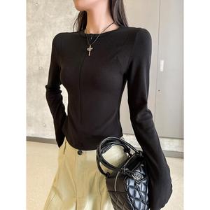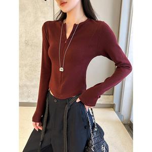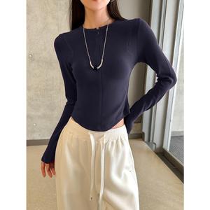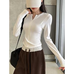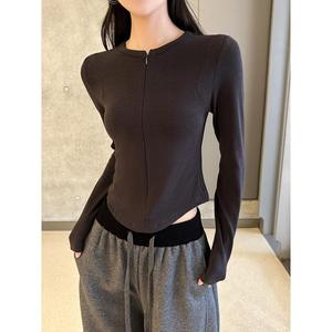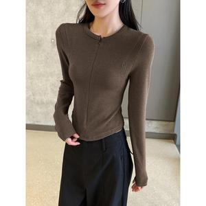 韩版2025秋季新款拉链百搭长袖恤女修身显瘦领套头上衣