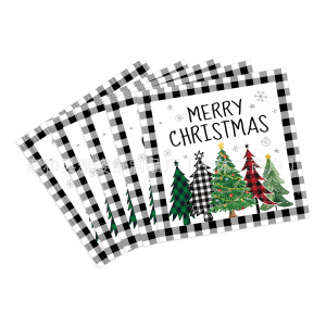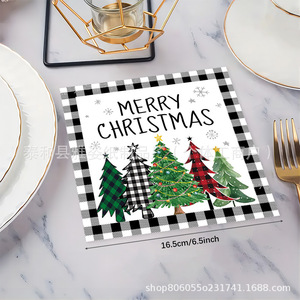 新款跨境亚马逊圣诞节黑白圣诞树主题派对一次性餐巾纸装饰用品