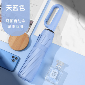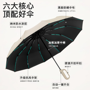 2025年新款挂钩环扣自动锁扣便携黑胶遮阳加固抗风暴男女学生雨伞