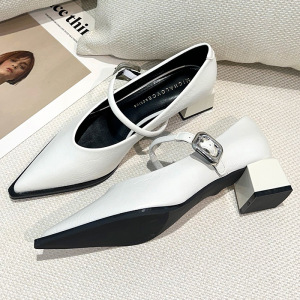 2025年秋季新款尖头高跟鞋女休闲法式时尚款一字带粗跟玛丽珍单鞋