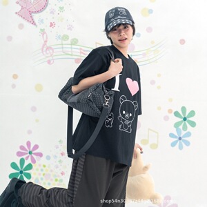 新款韩国小众hugyourskin轻松熊联名款休闲风字母刺绣单肩斜挎包