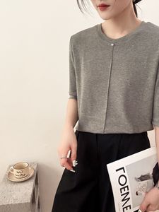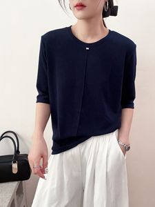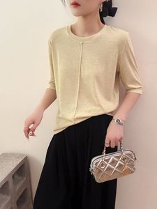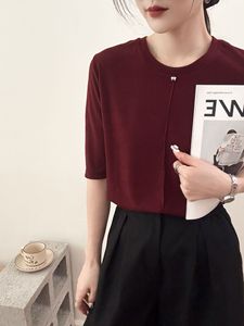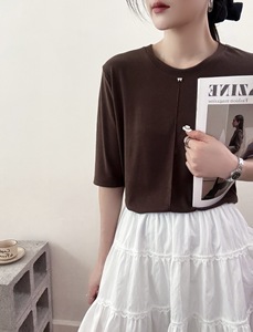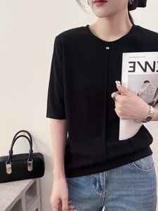 蝴蝶钉珠羊毛中袖T恤夏季新款时尚亲肤短袖宽松圆领打底针织衫女