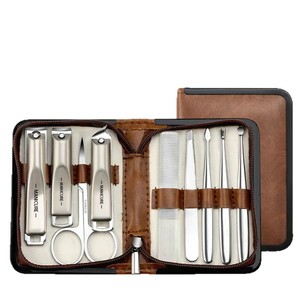 跨境2025新款指甲钳9件套装全套高档棕色指甲刀剪修甲锉可印logo
