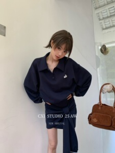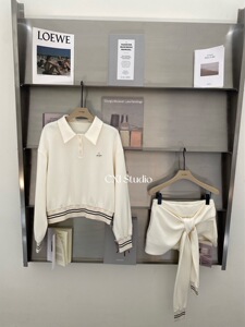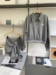 CXI 柏林少女polo领上衣半身裙两件套针织套装休闲宽松卫衣短裙