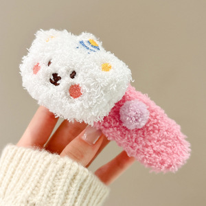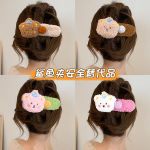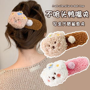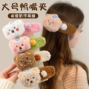 高级感大号小熊毛绒发夹女秋冬半扎发气质韩式横夹后脑勺鸭嘴夹子