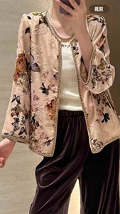 2025南油批发新款篙及感真丝丝绒烧花绣珠链外套上衣女不退不换