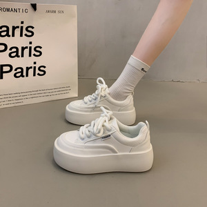 真皮松糕厚底小白鞋女小众增高板鞋2025新款春夏季百搭休闲运动鞋