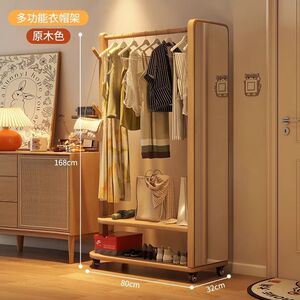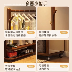 实木衣帽架全身试穿衣镜一体衣架可移动挂衣架落地卧室置物架家用