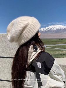 宽松大头围针织帽子女秋冬显脸小保暖毛绒堆堆帽百搭兔毛毛线帽