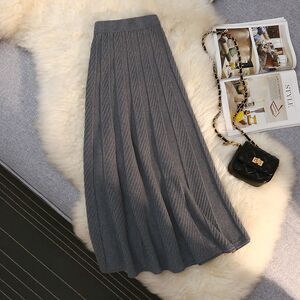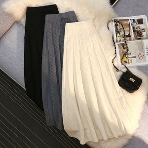 针织半身裙女秋冬新款中长款高腰显瘦气质百褶裙洋气百搭时尚伞裙