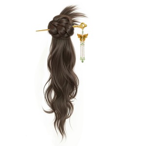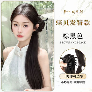 国风层次卷马尾【棕黑色】+砂金蝴蝶发簪