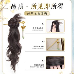 新中式假发马尾辫子女古风汉服旗袍仿真轻国风蝴蝶流苏发簪侧马尾