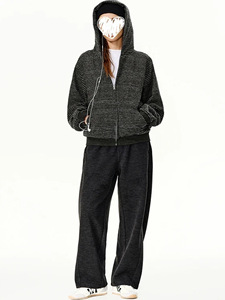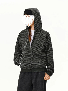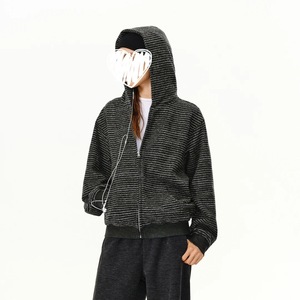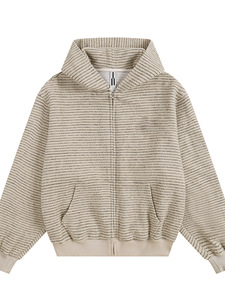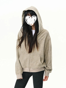 杏色条纹拉链开衫卫衣男女款秋季小众设计感美式复古连帽情侣外套