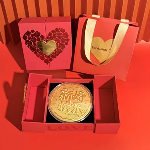 新婚快乐圆饼【爱心双开礼盒】+证书