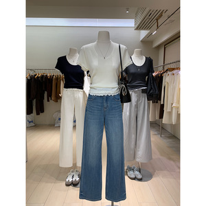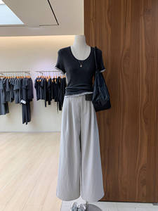 甜美木耳边拼接假两件气质U领修身版针织衫时髦百搭光板短袖小衫