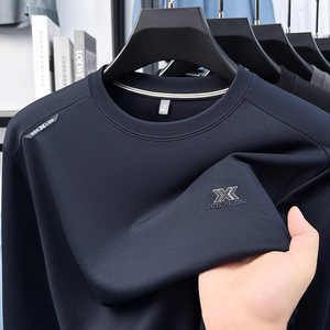 2025秋季男士长袖T恤新款中年潮流高级感休闲圆领百搭卫衣男上衣