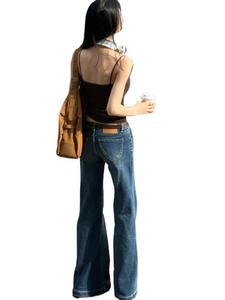 美式复古低腰微喇牛仔裤女2025夏季新款阔腿喇叭不贴腿拖地小个子