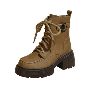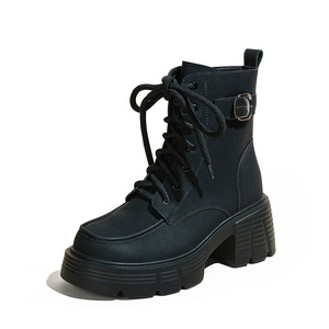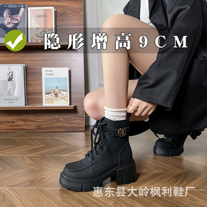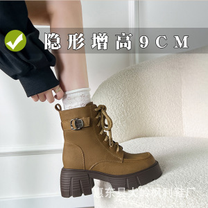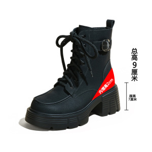 内增高马丁靴女2025秋冬新款辣妹机车靴小个子高跟厚底系带短靴