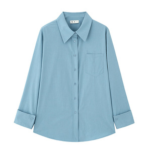 鹭青一原创【悠蓝】莱赛尔棉衬衫女春经典纯色设计感法式休闲上衣