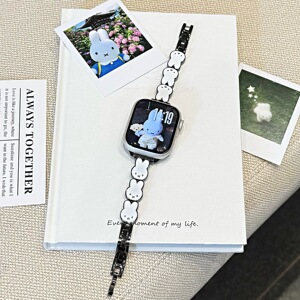 适用苹果S10 S11米菲小白兔表链三星华为Fit4 GT5 18 20 22mm腕带