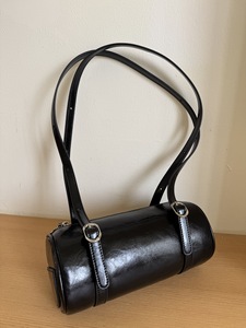 新款油蜡牛皮圆桶包小众设计韩系复古风腋下包通勤手提包波士顿包