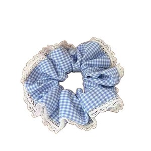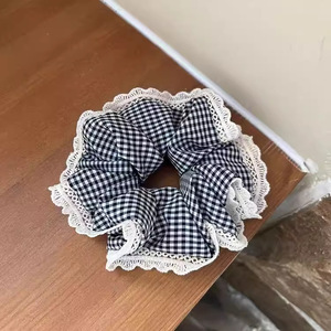 韩版氛围感蕾丝大肠发圈发饰韩系格子发绳芭蕾风马尾头花头绳