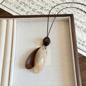 新中式镂空木质圆形吊坠项链女民族风小众设计毛衣链复古挂脖配饰