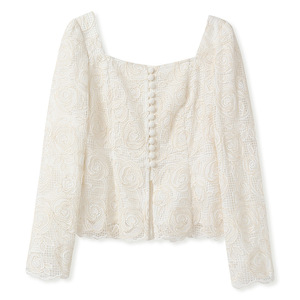 秋季2025新款国风方领蕾丝绣花上衣新中式修身时尚刺绣衬衫N8008
