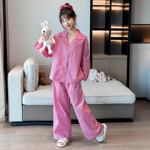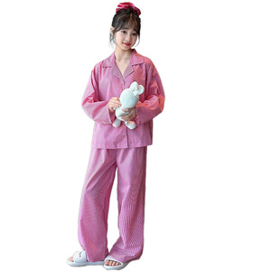 女童睡衣春秋2025新款长袖甜美可爱中大童条纹套装家居服套装