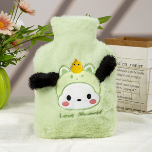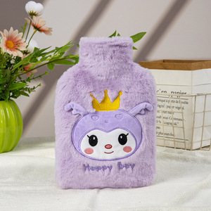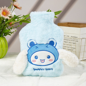 卡通可爱注水热水袋仿兔毛拼接毛绒可定制布套