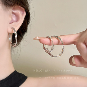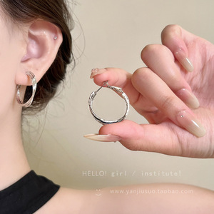 银色不规则双层麻花耳圈女2025新款小众设计感耳环高级感气质耳扣