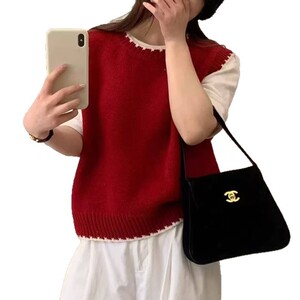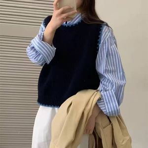 撞色针织马甲2025春秋新款宽松圆领无袖叠穿毛衣背心配衬衣坎肩女